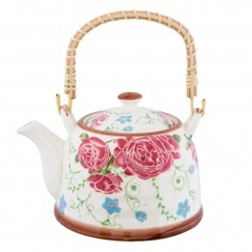 Theepot met filter 700 ml beige roze keramiek bloemen theekan