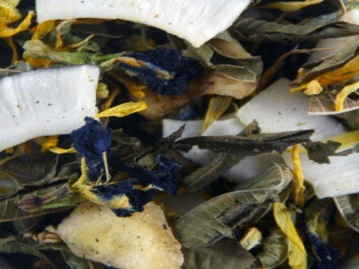 Lekker weg dromen naar de zee ! Met deze geweldige blauwe thee met een zachte en zoete bananen smaak. Een heerlijke ijsthee !Deze ijsthee heeft zijn kleur te danken aan de Butterfly Pea flower (nederlandse naam: klittenbloem). De thee even laten trekken en het zal je meenemen op een wonderlijke reis van kleuren en smaken. Ingredienten: Banaan, kokos, kamille, klittenbloem, verveine, goudsbloem, aroma.